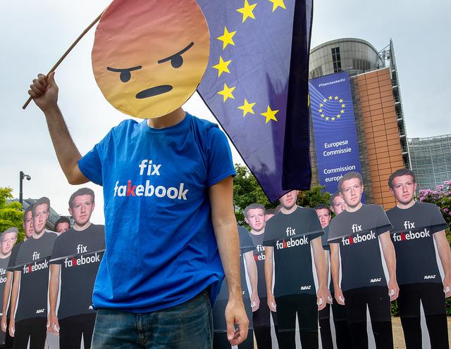 Army of fake Zuckerbergs march on EU parliament ahead of the CEO hearing, Avaaz, Flickr