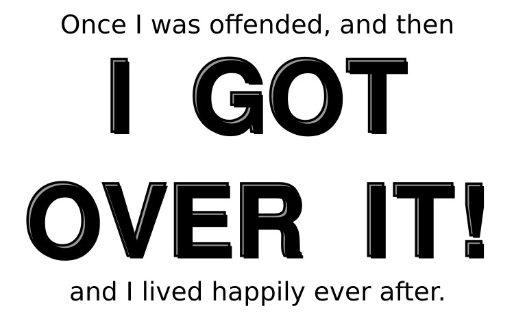 If it weren't for that instant of being offended, I would never have discovered that I have this superpower. The wonderful, magical ability to be offended, and then get over it! I'm still considering sewing up a superhero costume and calling myself OverItMan.
