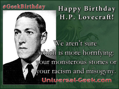 I can't stand Lovecraft. He was a bigoted poop, he was a sour cuss that cast a gloomy cloud over everyone who crossed his path, he was stunningly backward and ignorant even for his time, the film Re-Animator based on his work is over-rated, and his writing to me sounds like fingernails on a chalkboard.