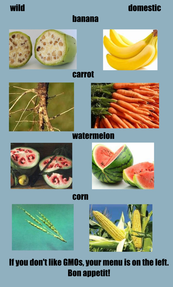 After years of conflict, the USDA is finally labeling "GMO" foods. That distinction, as the Genetic Literacy Project (bless 'em!) points out, is meaningless. The acronym "GMO (Genetically Modified Organism)" should make you sicker than any GMO thing you could eat, because there is no such thing as an organism that ISN'T genetically modified! The same litany of things that affect human DNA also affects the DNA of everything else, and in addition, we've already been genetically modifying animals and plants for thousands of years through a process we call - wait for it - selective breeding!