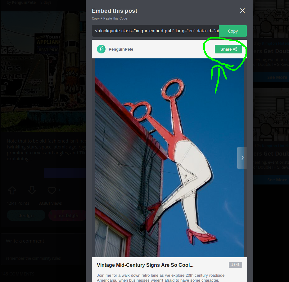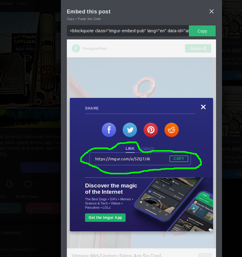 1) Click “…” beside the social link icons of an IMGUR post