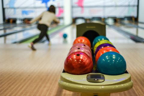 Picking your ball should come with a few rules (so that your game is efficient and you are safe!). Your ball needs to be 10% of your body weight, so if you are 120 pounds, then a 12-pound ball would be fitting. A plethora of professional bowlers use 15-pound balls. The covering of the ball can be urethane, reactive resin, or polyester (also known as plastic). Have a good right hook? To keep that hook potential, a reactive resin cover is your best bet as it grips the lanes better than the plastic balls.