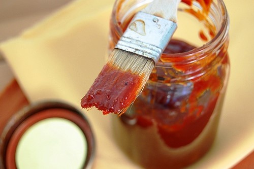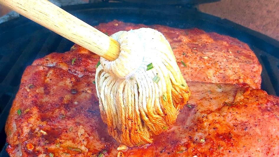 Today you can buy a miniature tool that looks like a kitchen mop to mop your meat. the cotton fibers hold the thin mop sauce and make it easy to dash large amounts on at once. It’s preferable to a basting brush, as it’s less likely to wipe off seasonings that are already on the meat.