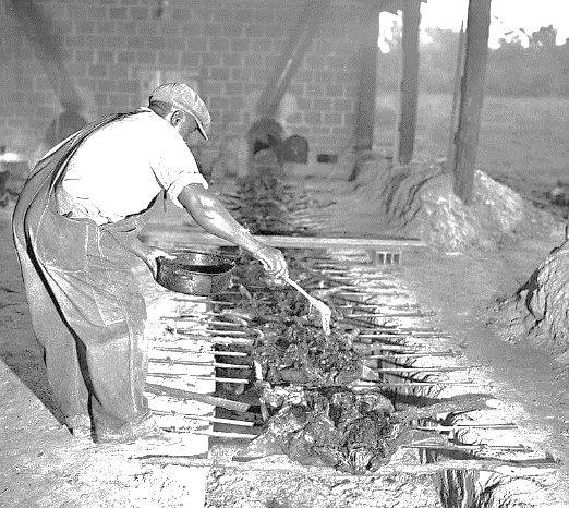 To keep all that meat moist, he mopped it with a thinned sauce...using a real mop. Hence the barbecue term, "mop."