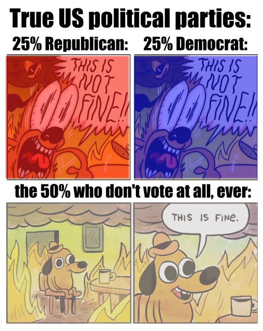 actually only 25% Republican, 25% Democrat, and 50% Who-Gives-A-Rats.