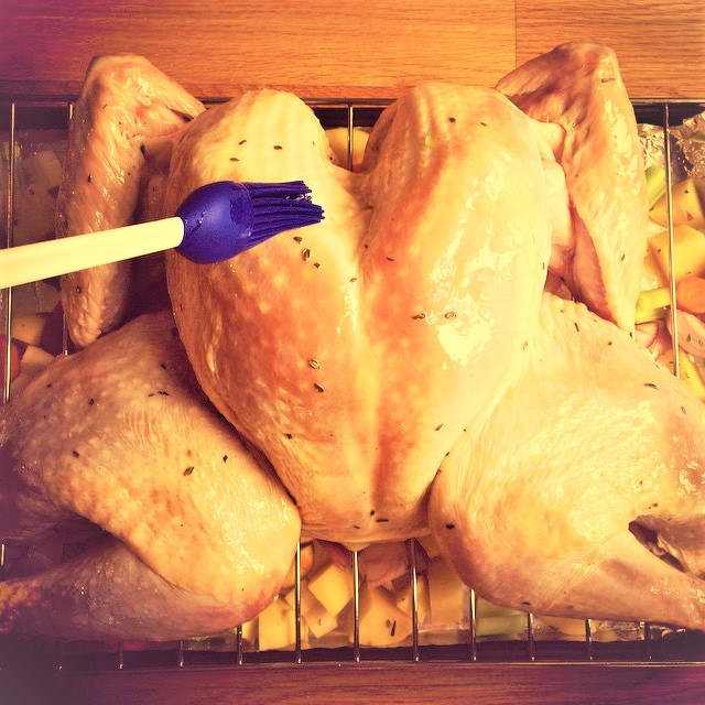 Heat and stir the reserved marinade to a boil, cool, and inject into the whole chicken (see video below), then allow the chicken to rest for at least 1 hour before grilling.