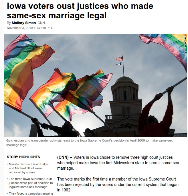 in Iowa, it just cost a few judges. Worth it! Progressives in America