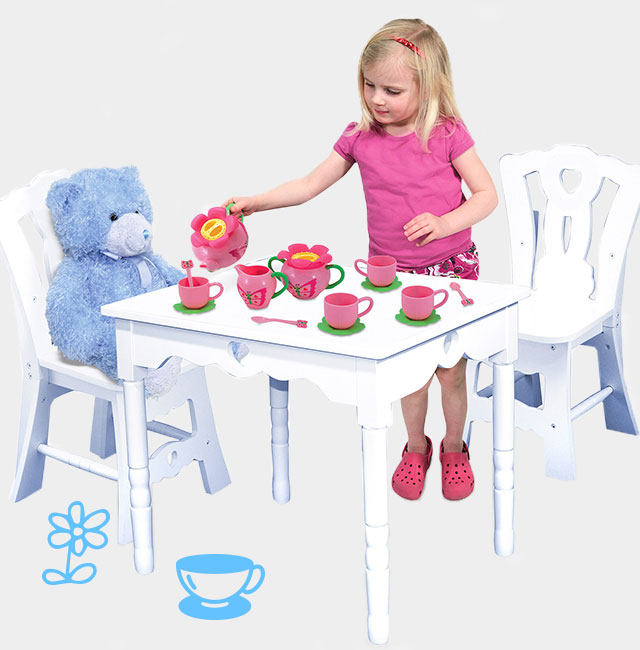 an imaginary tea party with her imaginary friends. That is what a