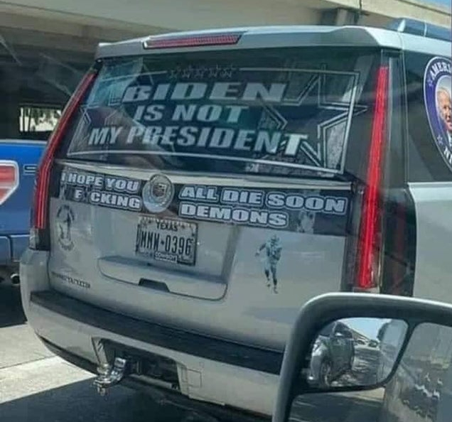 at that MAGA idiot's car driving around with a death threat painted