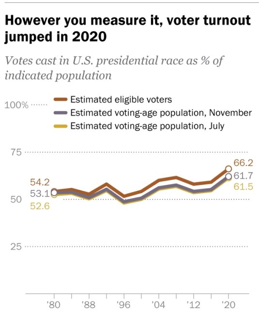 crappy enough year that at least 60% (estimates up to 67%) of the eligible voting population could bother to stir their buns off the couch long enough to fill out a ballot. I guess half a million Americans dropping dead did have some impact after all! On ~16% of the people, that is.