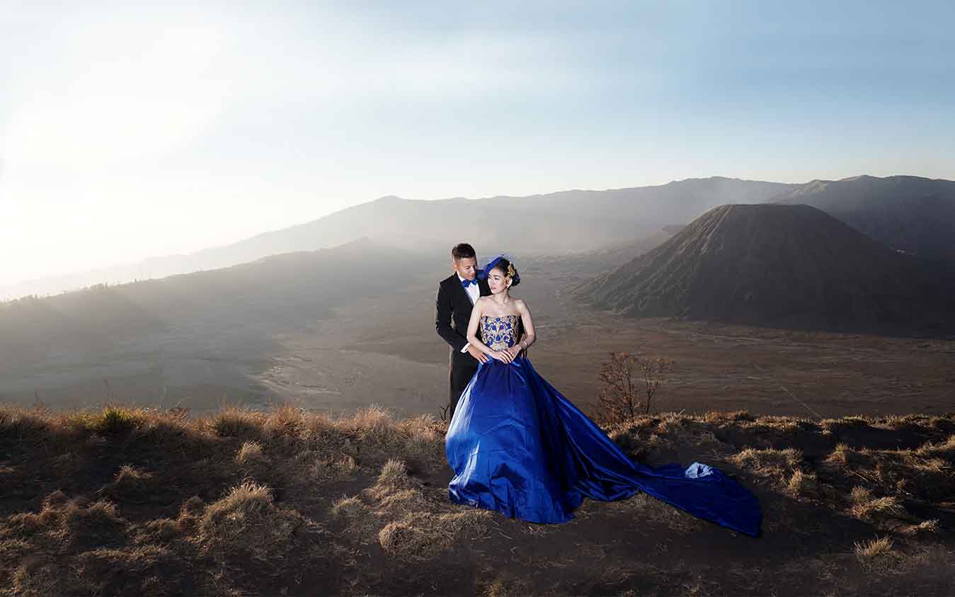 Bosan dengan konsep foto prewedding di laut? Bagaimana jika kali ini Anda memilih gunung sebagai tempat lokasi foto prewedding? Di Gunung Bromo, Jawa TImur, Anda tidak perlu repot-repot mendaki gunung untuk bisa mendapatkan lokasi foto yang cantik. Ada banyak sekali spot foto terbaik yang bisa Anda gunakan di kawasan Taman Nasional Bromo, mulai dari Penanjakan 1, Penanjakan 2, Padang Savana, Pasir Berbisik, sampai dengan Bukit Teletubbies.