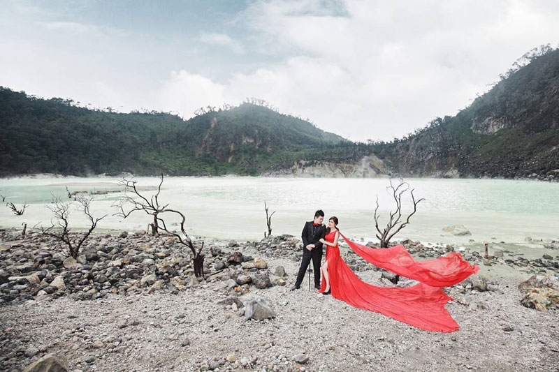 Ada kabar baik bagi Anda yang tinggal di Bandung dan sekitarnya. Pasalnya, ada sebuah tempat wisata yang tidak bisa dibilang baru, tapi sudah mulai dimanfaatkan sebagai lokasi foto prewedding, lho. Ya, Kawah Putih kini sudah banyak dipilih oleh pasangan-pasangan untuk melangsungkan foto prewedding. Air di kawah ini berwarna hijau pucat yang nyaris seperti warna putih ini memang memiliki daya tarik yang luar biasa. Tentu saja tempat yang pernah dijadikan lokasi syuting film “Heart” ini adalah pilihan lokasi foto prewedding terbaik.
