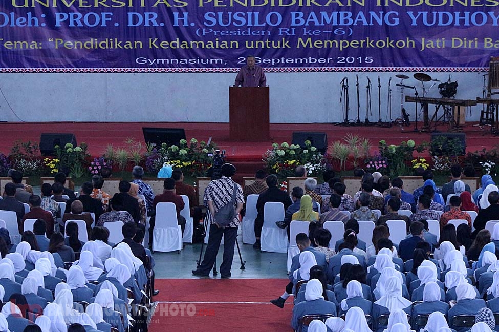SBY saat memberikan kuliah umum di Gymnasium UPI