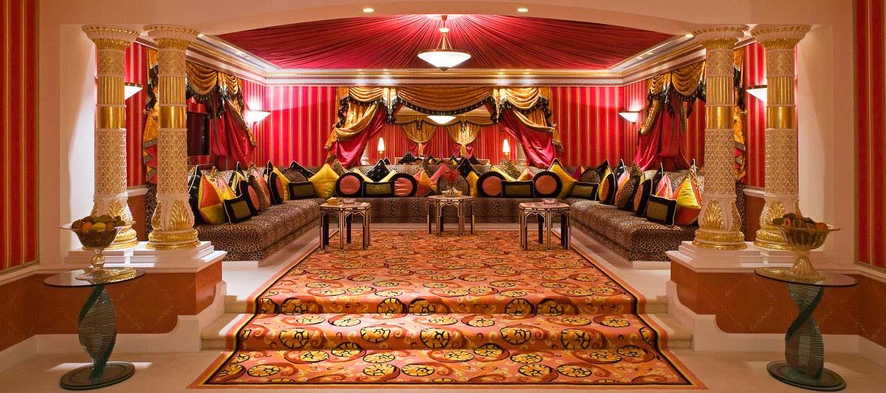 Di dalam suite ini terdapat 6 buah kamar mewah dengan dekorasi yang didominasi dengan warna emas. Tentu saja hotel ini mengusung interior khas India sehingga membuat para tamunya merasakan atmosfer tinggal di kamar kerajaan India.