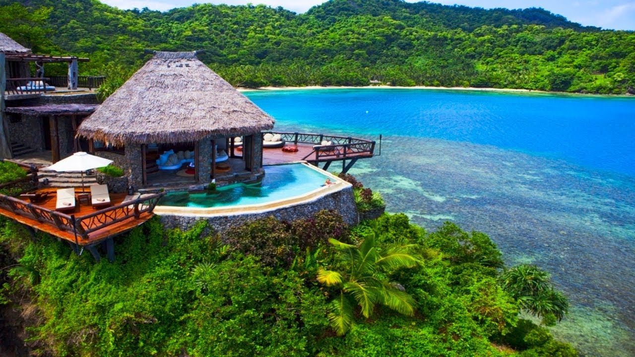 Tak ada yang bisa menolak pesona Laucala Island Resort di Replublik Kepulauan Fiji. Penginapan mewah ini memiliki 25 villa dengan fasilitas yang pasti akan memanjakan Anda. Pemandangan laut Samudra Pasifik yang biru kehijauan juga dapat menyegarkan mata.