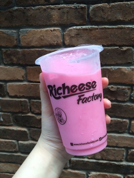 Minimal yang dimiliki oleh Richeese Factory juga menarik. Pasalnya disaat para pesaingnya hanya menyediakan minuman bersoda, Richeese Factory ternyata menyediakan minuman yang ikonik, yakni bernama pink lava yang merupakan sebuah minimal berwarna pink dan terbuat dari stroberi dan susu.