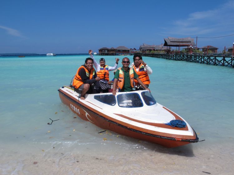 Kalau sudah sampai di Derawan, rasanya akan kurang lengkap jika kamu tidak mengunjungi Maratua, Kakaban, dan Sangalaki. Untuk bisa berkeliling mengitari ketiga pulau tersebut, kamu bisa menyewa speedboat berkapasitas 15 orang dengan harga sewa 4 juta rupiah per hari. Jika terlalu mahal, kamu juga bisa menyewa speedboat kecil berkapasitas 5 orang dengan harga sewa 1,2 juta rupiah.