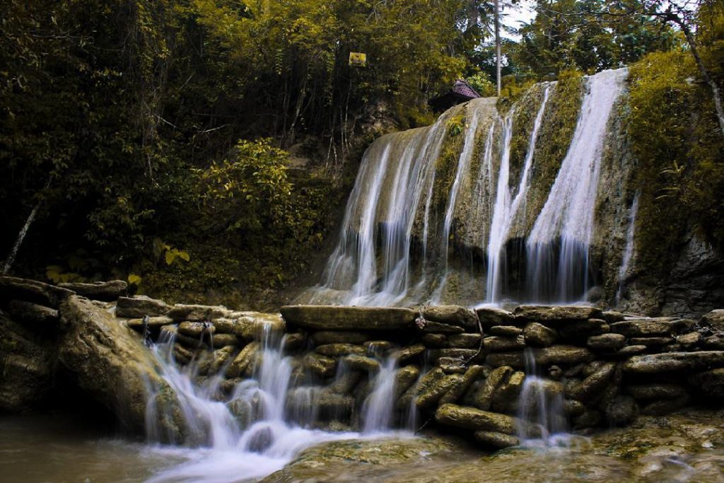 terjun ini bisa dibilang cukup unik, karena bentuknya yang berundak dan airnya