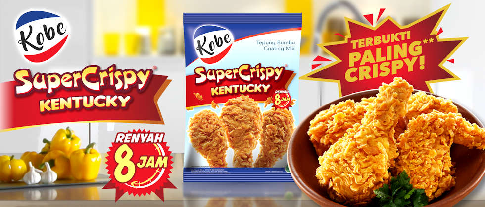 Berdasarkan riset, 7 dari 10 ibu-ibu di Indonesia lebih suka dan memilih Kobe Tepung Bumbu dibandingkan produk tepung lainnya. Karena hasilnya yang memang renyah, crispi, bumbunya yang pas, tidak kalah dengan masakan restoran mahal. Cukup menggunakan tepung bumbu Kobe Crispi, anda sudah mendapatkan ayam Kentucky yang super renyah.