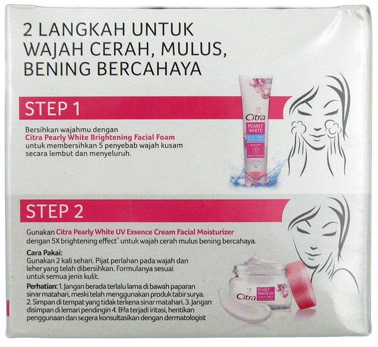 Citra Pearly White UV Essence Cream Facial Moisturizer ini merupakan luaran dari brand Unilever. Produk ini juga mengandung moisturizer yang dapat melembabkan kulit wajah. Untuk jenis kulit kering sampai normal, produk ini boleh dicoba, tapi saya gak sarankan untuk kamu yang memiliki kulit berminyak. Karena bisa membuat wajah kamu tampak lebih berminyak yang membuat kamu gak percaya diri. Produk ini memiliki sepasang, ada Facial Foam dan ada Cream Facial Moisturizer.