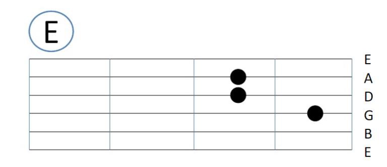Sedangkan untuk kunci gitar E kalian bisa menggunakan jari telunjuk di garis/titik G (senar 3), jari tengah di garis/ titik A (senar 5) kemudian jari manis di garis/titik D (senar 4).