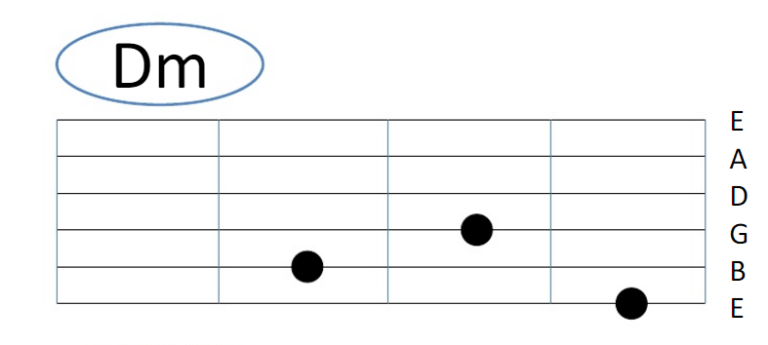 Untuk kunci gitar Dm jari telunjuk si garis/titik E (senar 1) paling bawah, jari tengah di garis/titik G (senar 3), dan jari manis di garis/titik B (senar 2). Atau jika kalian merasa tidak nyaman, kalian bisa menggantinya dengan jari tengah di garis/titik E (senar 1), jari manis di garis/titik G (senar 3) kemudian jari kelingking di garis/titik B (senar 2).