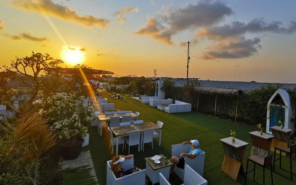 Hotel ini sangat cocok digunakan sebagai tempat nongkrong bersama kawan-kawan berkat kondisi lingkungan yang nyaman dan menenangkan. Rooftop dibuat sedemikian rupa dengan jacuzzi dan beberapa set meja kursi untuk bersantai menikmati sore.