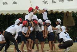 戦国武将の闘いを見る様な本気の闘いで、小学校では大盛り上がりです。頭の上の紅白帽を取られたら負けなのですが、大抵最後まで残る騎馬隊は、学年でももともと有名な気の強い女子や荒っぽい男子だったりする訳です。その頂上決戦たるや、罵詈雑言を吐きながら子供が相手の帽子を奪う為に必死に上半身だけ組み合い、爪を立てたり引っかいたりしながら、ズルも込みで、手を組み合って押したり引いたり叩いたり、泣きながら帽子を奪い合う、小学校六年生の赤組対白組の負けられない戦いは、毎年、親も生徒もみんな立ち上がって声援を送っています。
