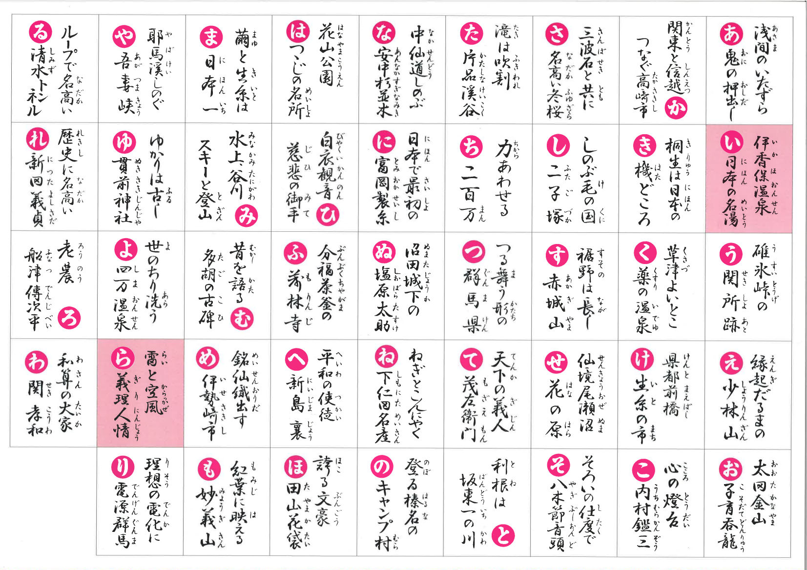 パートナーが群馬県民のため、群馬県民の心、「上毛カルタ」を大喜びでやっています。群馬県民で知らない人はいないらしいのと、群馬県の特産品や特徴の全てが出てくる面白いカルタです。大人になる頃までには出だしをちょっと読んだだけで、答えの言葉が分かるようになるという、群馬県の郷土愛たっぷりの内容です。