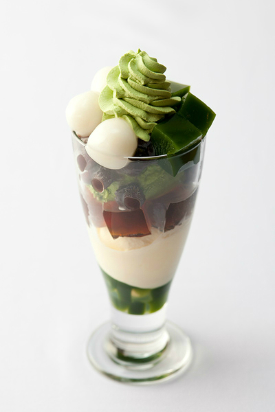一押しのメニューは、翠玉パフェ(すいぎょくぱふぇ)。ほろ苦いお抹茶と優しいほうじ茶をしっかりと味わえるパフェには、アイスにゼリーに寒天や白玉など和のテイストを満喫できる逸品です。