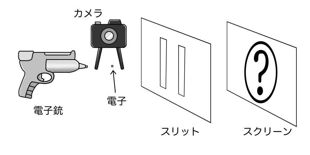 電子と呼ばれる量子をスリット越しにスクリーンへ飛ばす