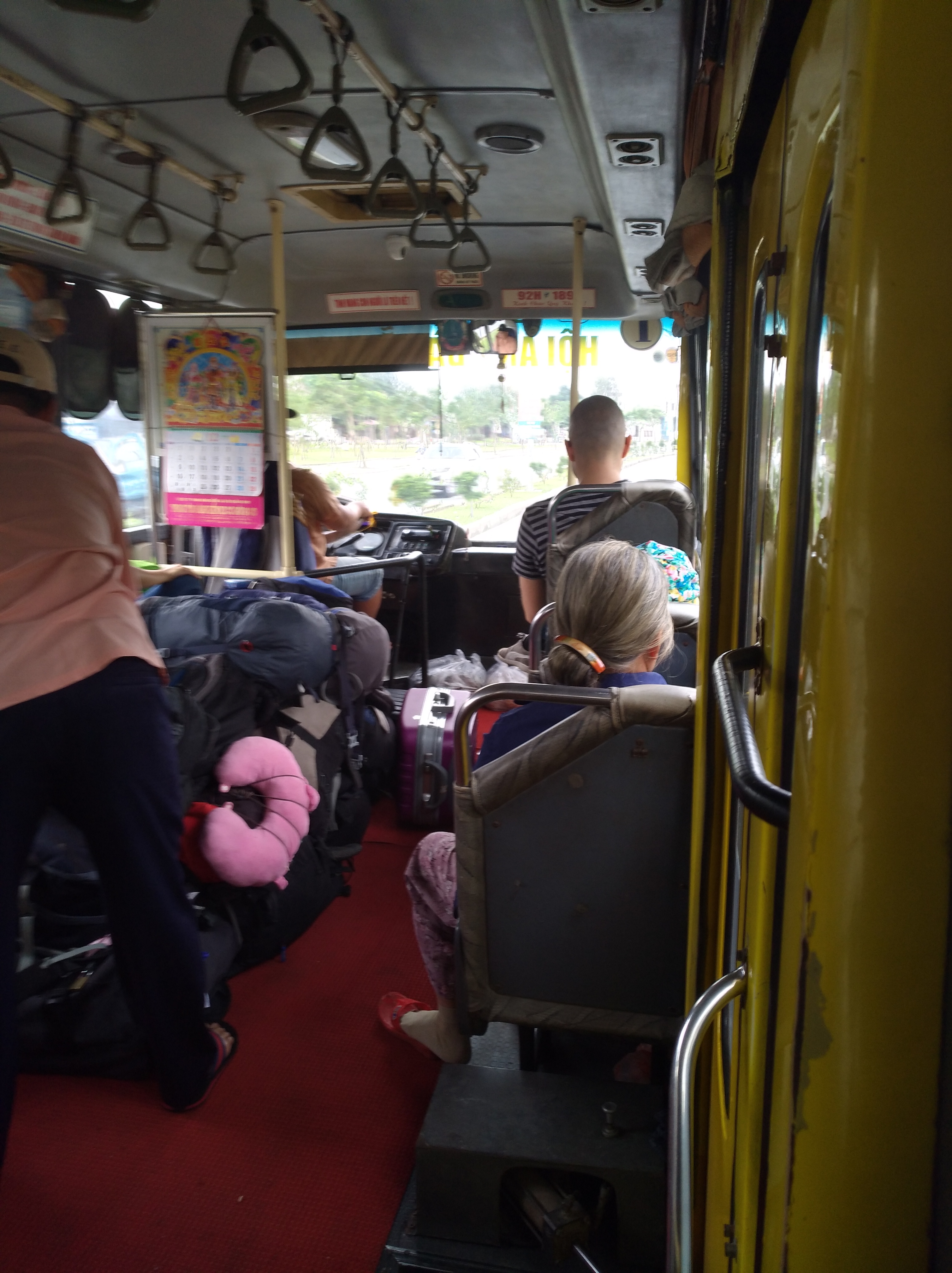 ブログやホイアンまでこのバスで来た旅人たちによると3万VND払ったという人から5万VND払ったという人もいました。Danabusの特徴は運転手に加えて車掌が一人乗っており、運賃の収集を担っています。車掌が乗客を見て観光客がいると判断するといわゆる「観光客運賃」を収集しにかかるのですがそれが車掌によって3万VNDから5万VNDまで開きがあるとのことでした。運が良ければ2万VNDで済むこともあるらしいですが....。