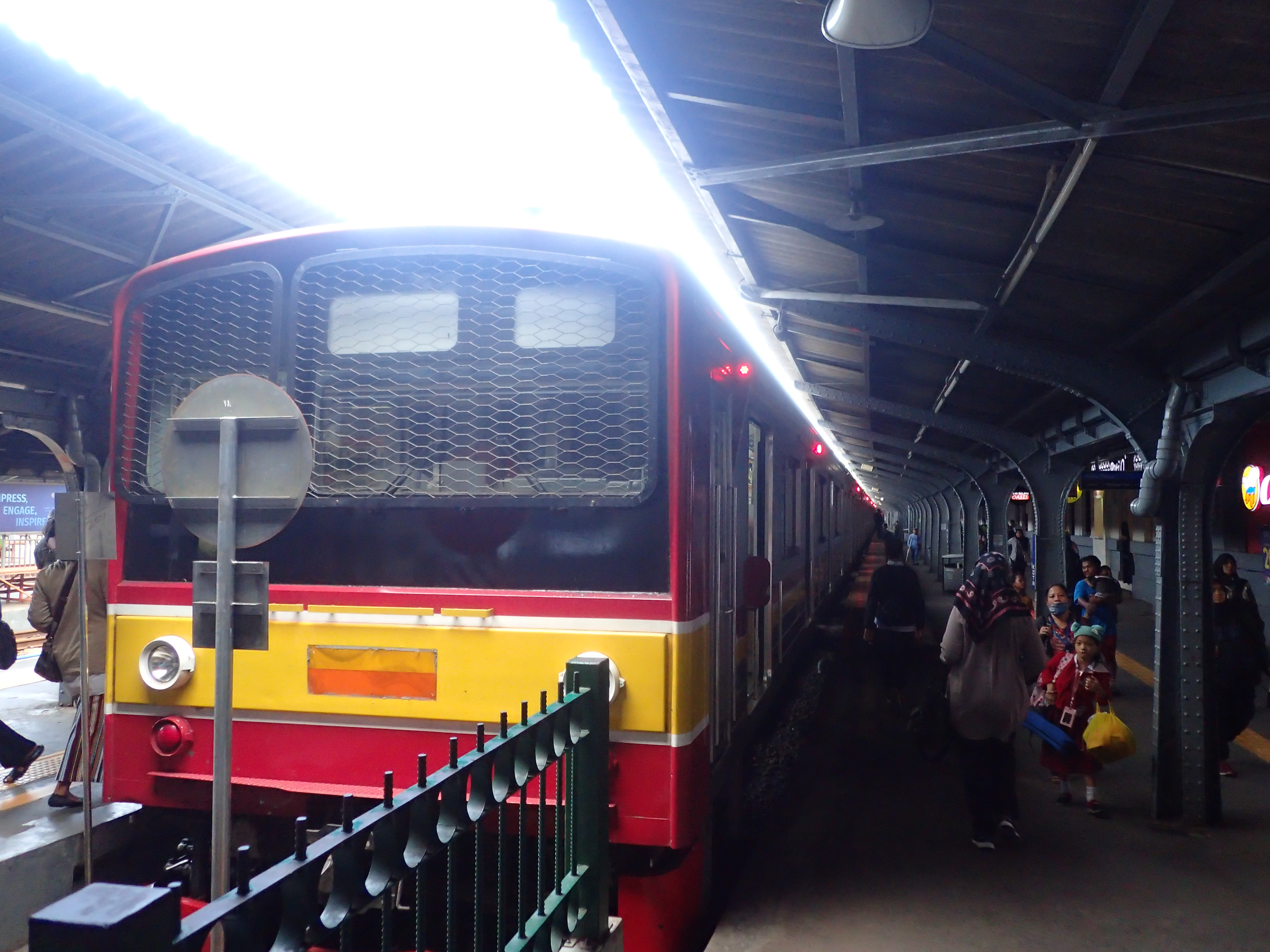 Jakarta Kota駅に到着しいてみるとまずは容赦のない段差が待ち受けていました。なるほど、それで反対側に停車している列車(元東西線の05系)にもみられるように手すりのようなものがついているのですね。