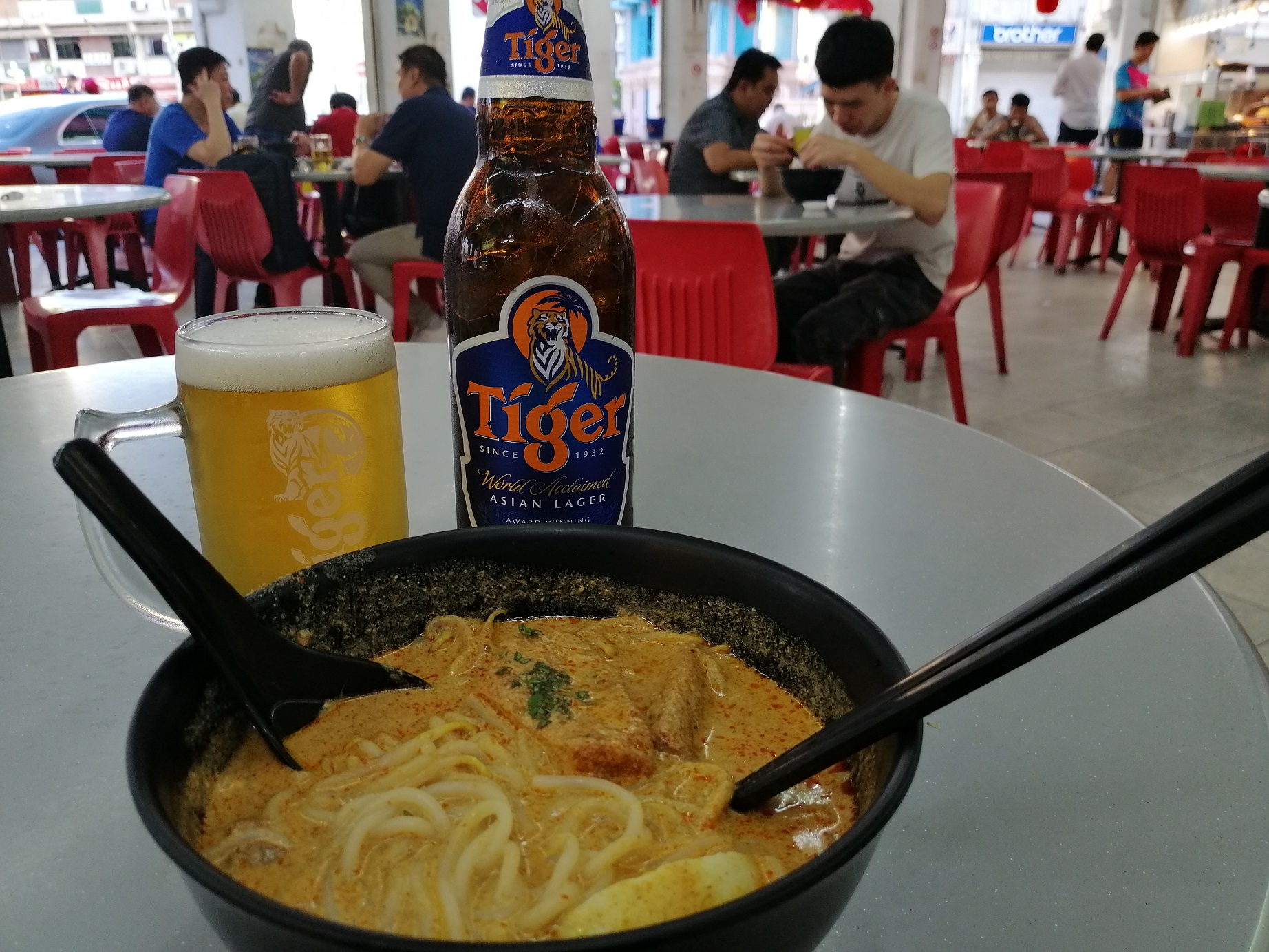 なお、シンガポールのホーカーはまず席を陣取ってあとは中の店舗に個別に注文していくスタイルです。あとは席で待ってたらもってきてくれるのでその時に清算することが多いです。写真の場合だとラクサとビールで2店舗お世話になった感じです。