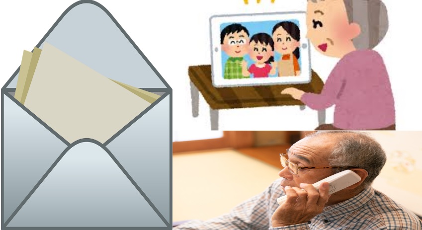 次に手紙も一つの手段です、どうせ新聞や必要な書類は施設に運ばれていくのですから一筆したためるのも良いといえます。写真も添えればより喜ばれます。そしてテレビ電話が現代の私達にはあるのです、使わない理由はありません。