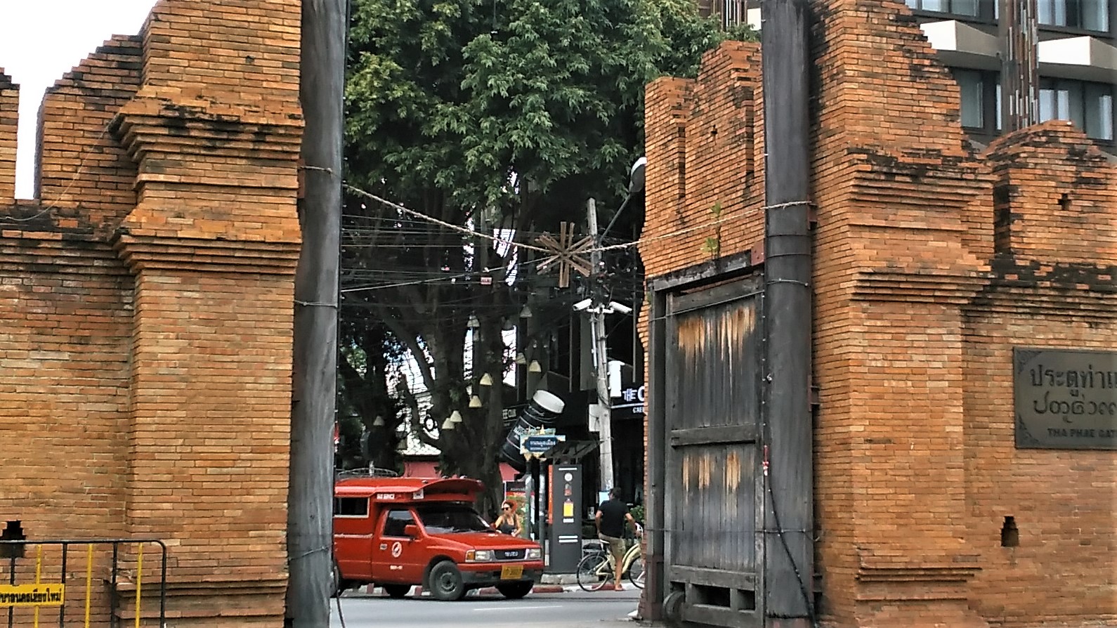 (チェンマイのソンテウ、チェンマイ・ターペー門で、著者撮影)