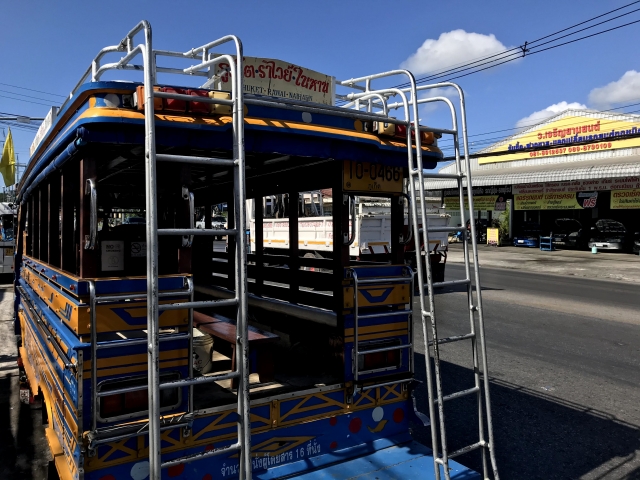 実はソンテウ、タイでよく見かける、ピックアップトラックの荷台に、屋根と椅子を取り付けただけの乗り物だ。