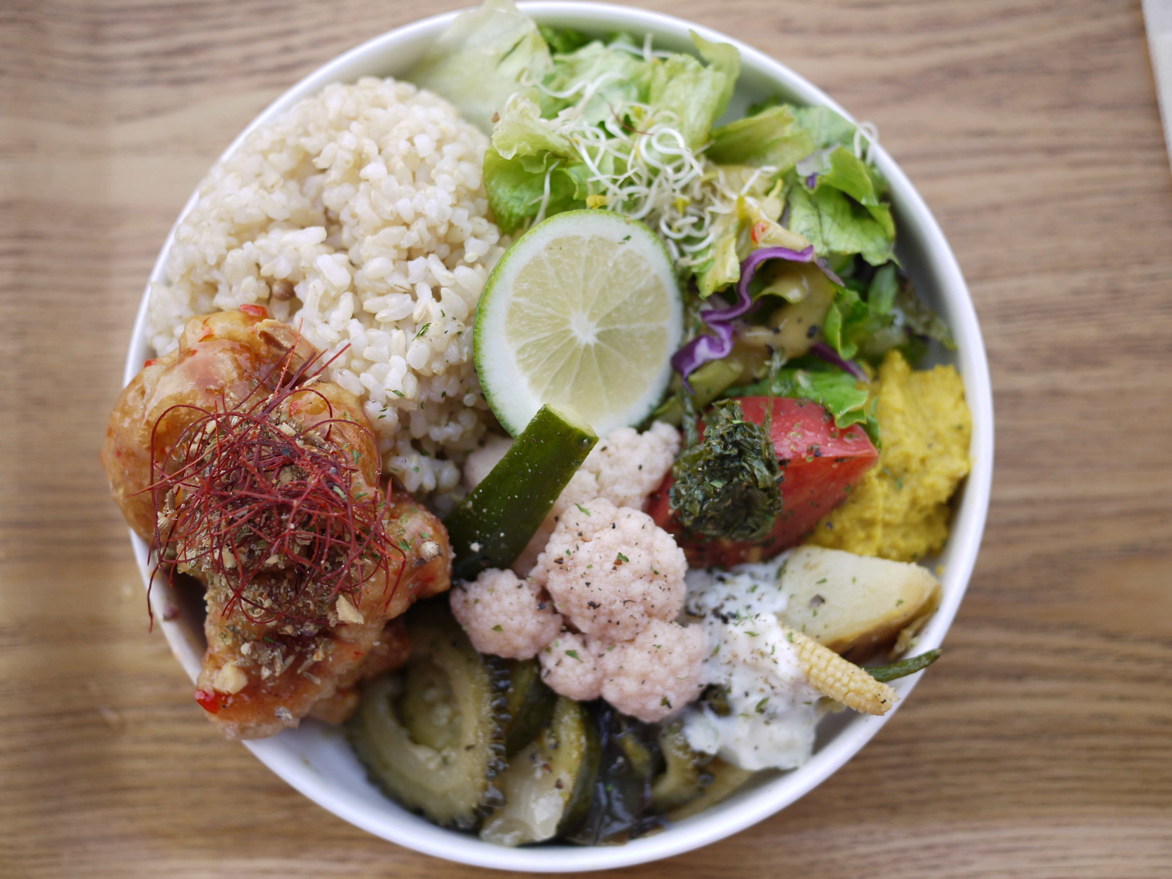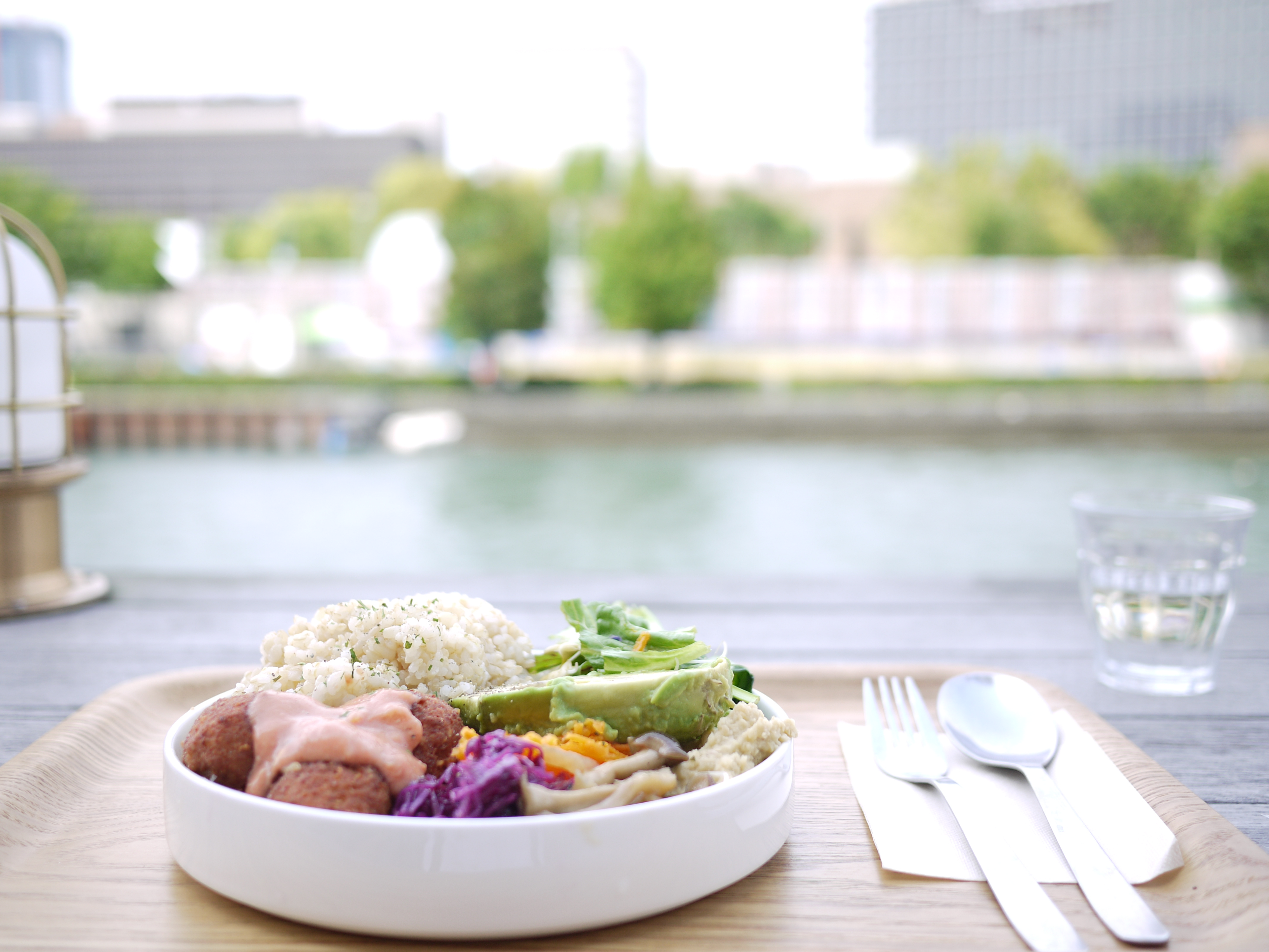 これは「夏のブッダボウル」。季節ごとに異なるブッダボウルがあるらしい。夏はサッパリとした口当たりのものが増え、少しピリ辛なのもうれしい。