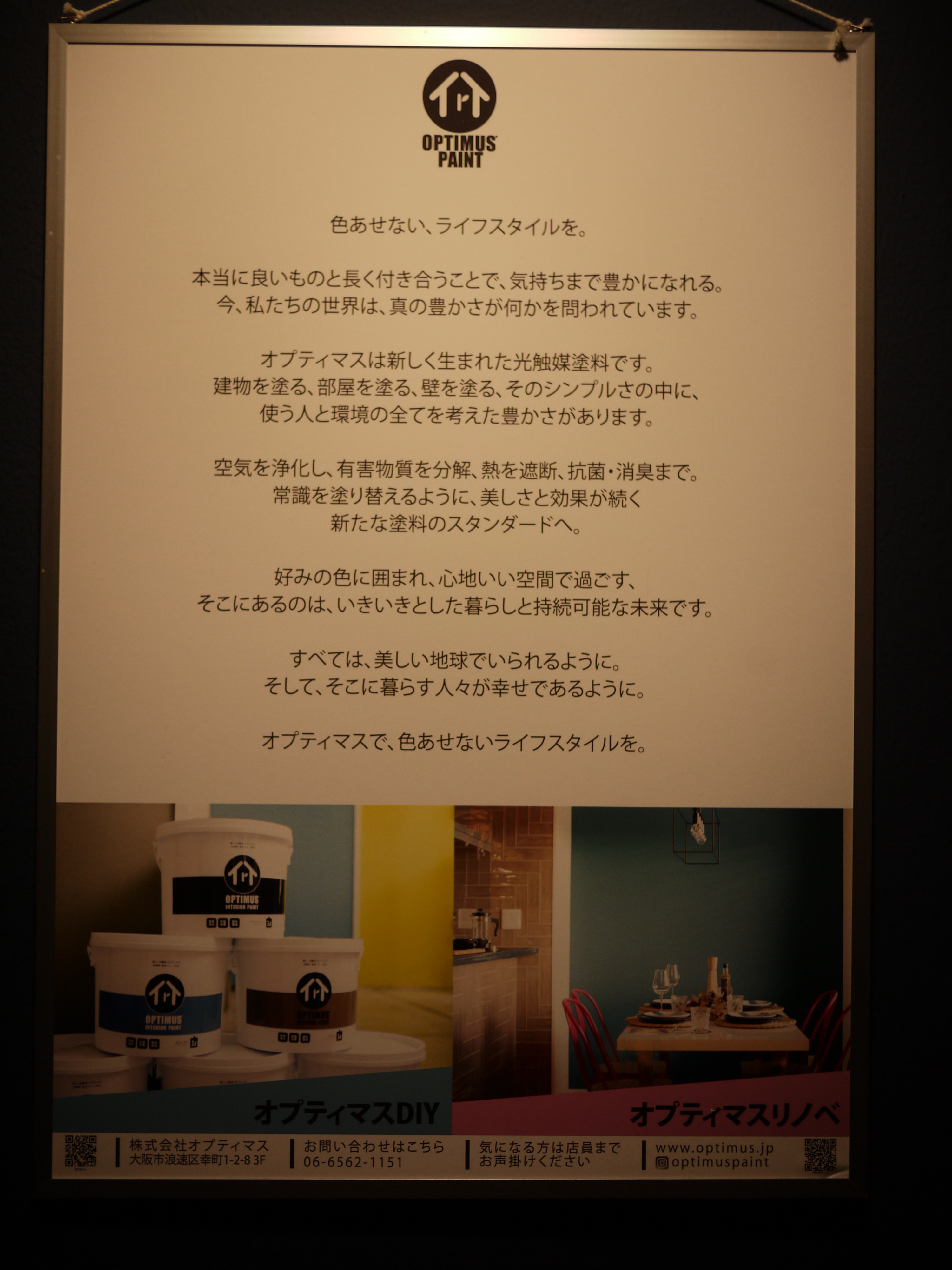 理念の横には、OPTIMUS PAINTという塗料についても書かれている。