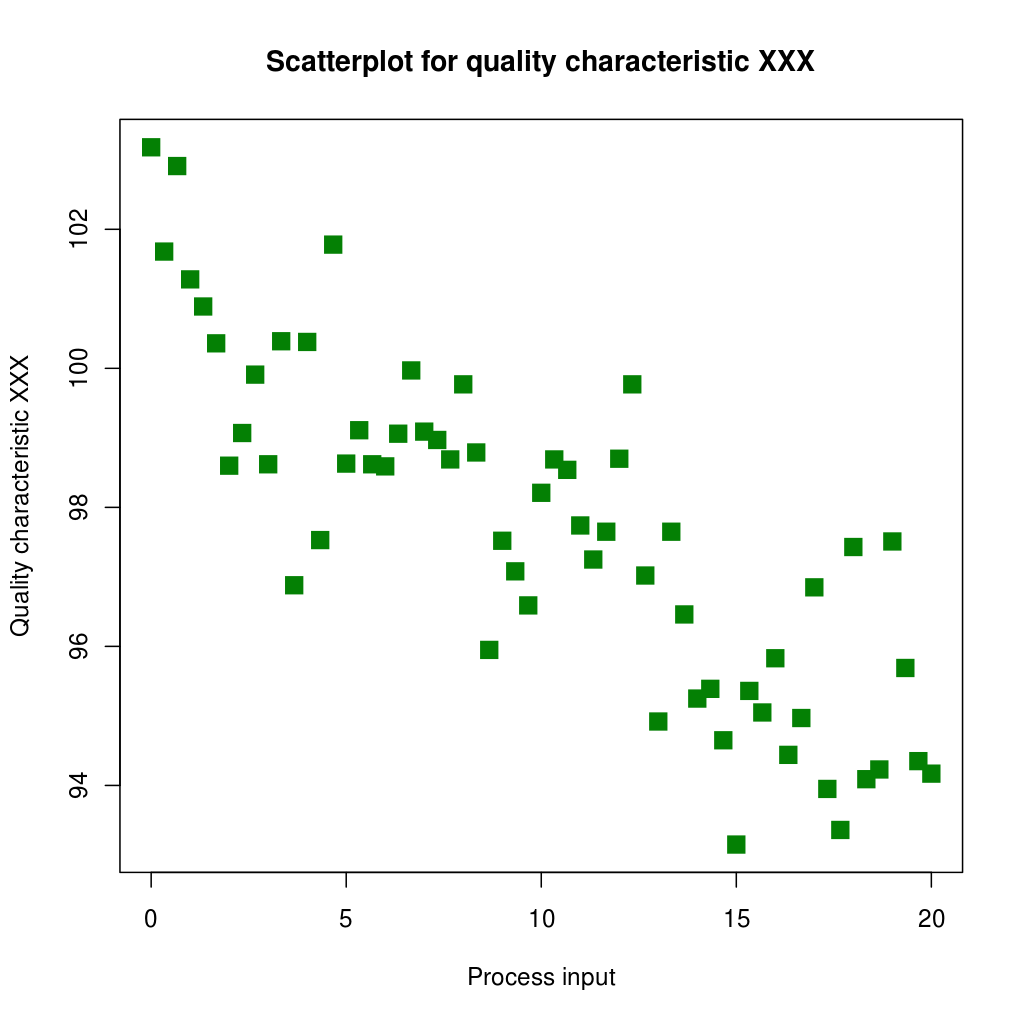 対応する2つのデータを組にして、横軸と縦軸に原因の系統と、結果の系統とを取ったグラフ用紙にプロットして、データ相互の関係を表す手法です。