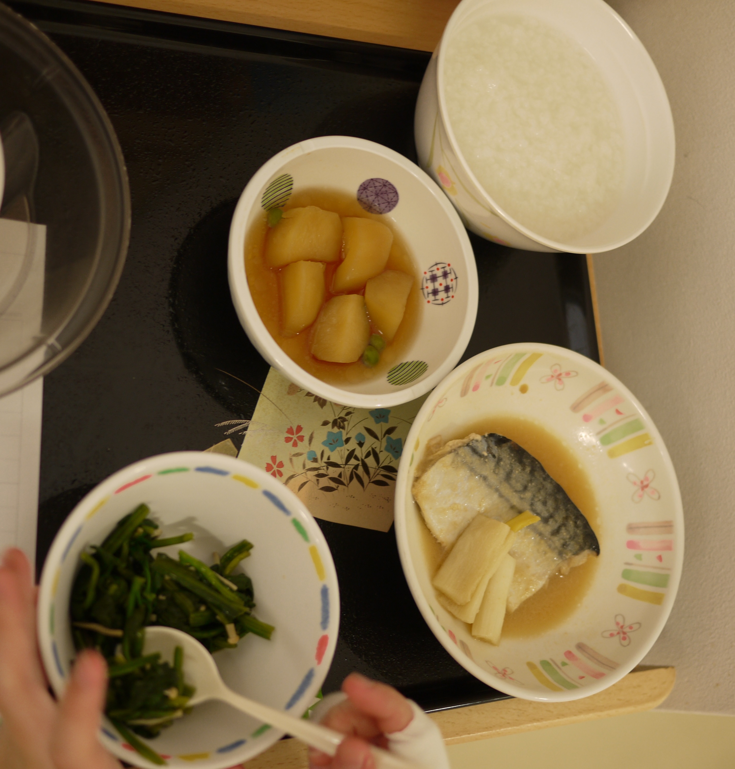 おかゆ(330g)は多いようで残してしまったが、おかずは完食。おいしかったよう。